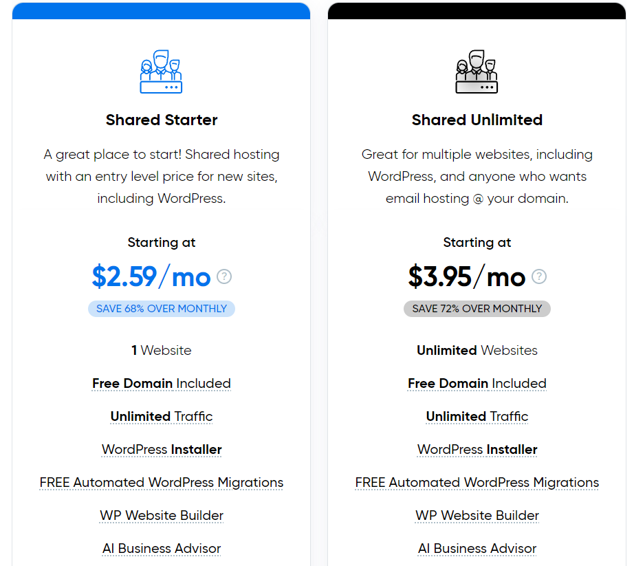 • Free Domain, SSL, and Privacy: All plans include a free domain for the first year, SSL certificates, and WHOIS privacy protection at no extra cost.